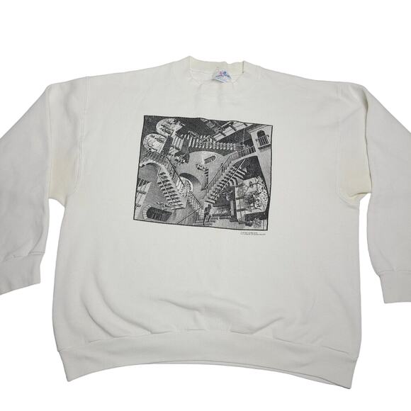 Vtg M.C. Escher Art Crewneck Sweatshirt Men's Medium White USA 1989