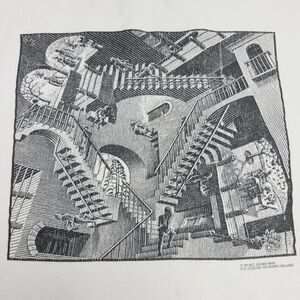 Vtg M.C. Escher Art Crewneck Sweatshirt Men's Medium White USA 1989. See photos for measurements and condition. Item has some minor flaws. Including stains on underarms and cracking on graphic.