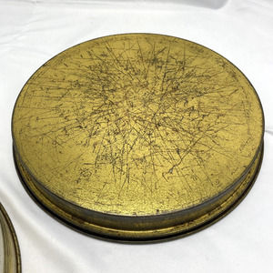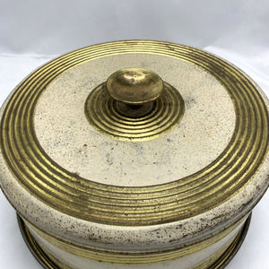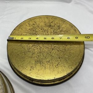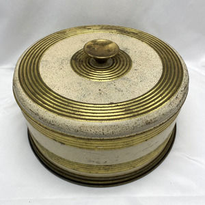 Vtg MCM 1960s Guildcraft? Gold Metal Cake Keeper Carrier Tin Hollywood Regency