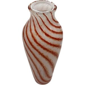 Vintage Mid-Century Modern glass vase with a unique white and dark orange swirl design.