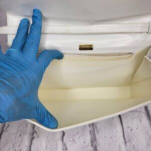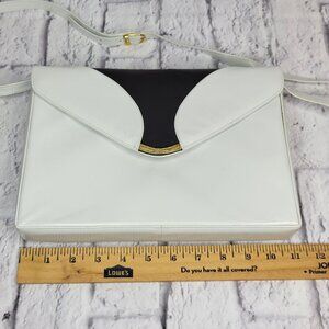 Vtg MCM Bally Womens Envelope Crossbody Bag White & Black Leather Made In Italy