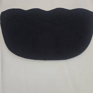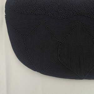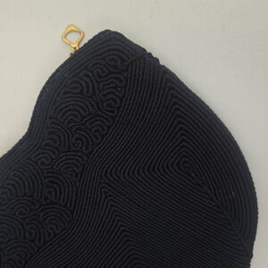 Beautiful vintage black Genuine Cordé Cordécraft clutch handbag features an art deco, abstract geometric design with undulating, wavy top edge. Very attractive! Dates to mid-century.