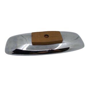 Vtg. MCM Danish style Milbern Celery Olive Dish Chromium Wood Base 14"x5" W/ Box. Pre owned good vintage condition with some minor wear to finish soecifically in the middle of the dish and also wear to box. For more details please study all pictures.