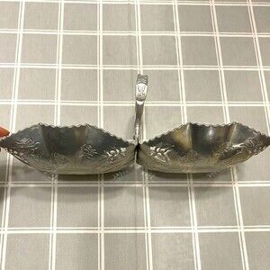 Vintage 1950’s MCM Hand Wrought Silver Aluminum Farber & Shelvin Double Candy Dish Nut Bowl Snack Tray with Handle