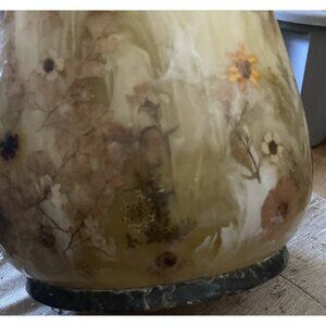 Vtg MCM Lucite Acrylic Honey Swirl Real Pressed Flowers Waste Basket Vase 10.5"