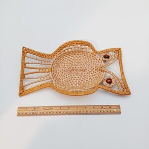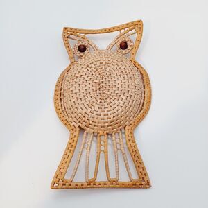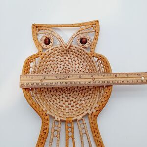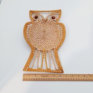 Vtg MCM OWL Rattan Raffia Boho Wall Trinket Table Decor Nature