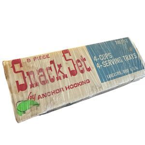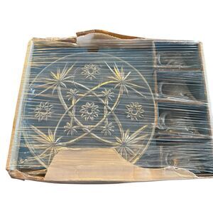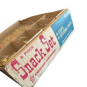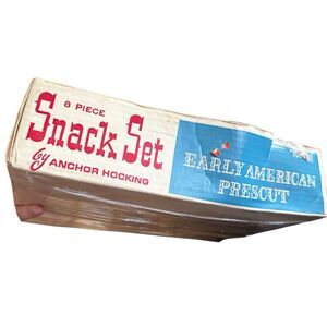 Vtg MCM Plate Tea Cup Set Anchor Hocking Early American Prescut 8 Piece Snack