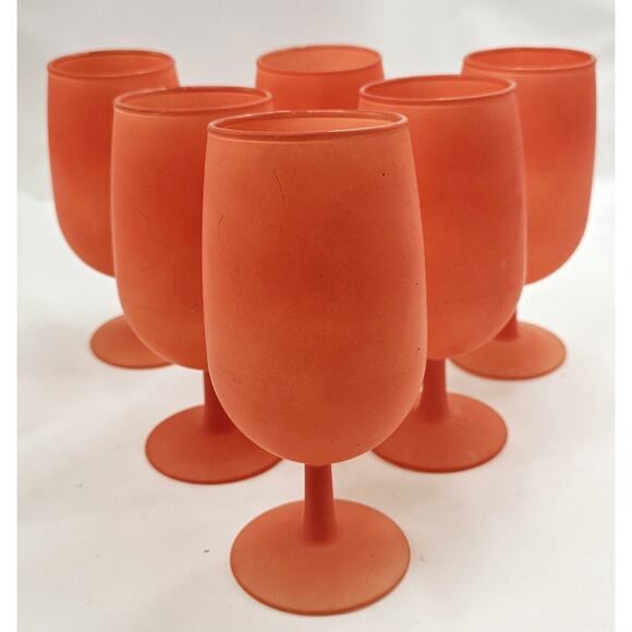 Vtg MCM Rainbow Glass Co Orange-Red Frosted Footed Goblet Set Of 6 Matte Finish