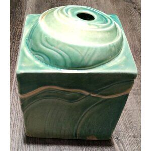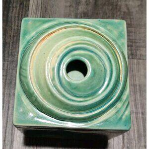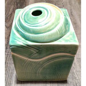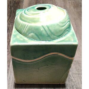 Vtg MCM Studio Pottery Green Earthtone Square Trinket Slab Box 4.5x4.5x6.5"