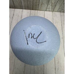 Vtg MCM Textured Blue Gray Tinted Pottery Vase Home Decor Signature 9.5" DIA