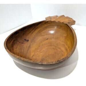 Vtg MCM Wooden Pineapple Shaped Carved Decorative Display Fruit Bowl 14"x9"x3"