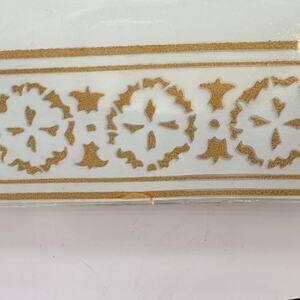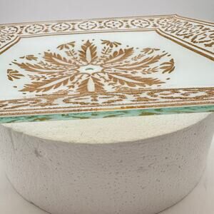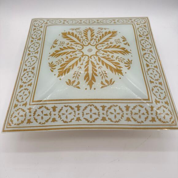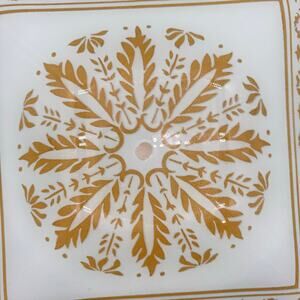 Vtg MCM square Ceiling Light Fixture Cover White Glass Gold Shade 16" 50s 60s EC