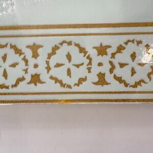 MCM Ceiling Light Fixture Cover White Glass Gold Gilt Shade