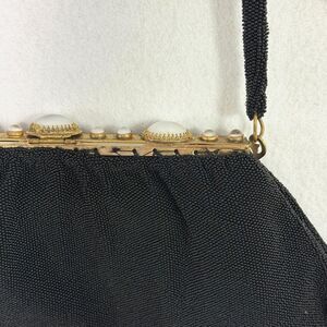 Vtg MICHEL SWISS PARIS Black Beaded Evening Bag Cabochon 40s 50s Made In France