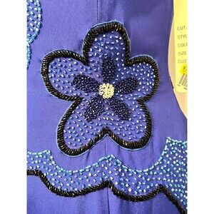 Vtg MIKE BENET FORMALS Sz 8 100% Silk Long Gown Dress Floral Beaded Prom Blue