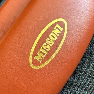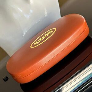 Vtg MISSONI Burnt Orange Leather & Gold Domed Hardshell Sunglasses Glasses Case
