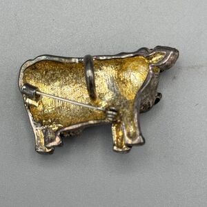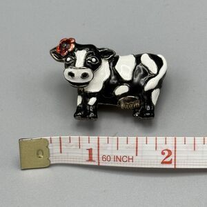 Vtg MJ Enameled Black and White Cow Brooch Pendant Red Flower Farmcore 1.5"