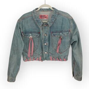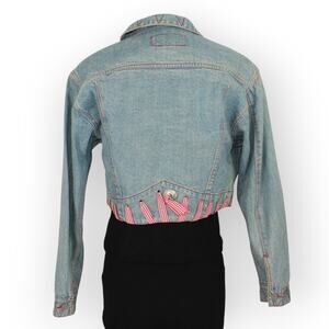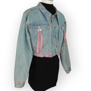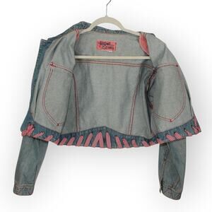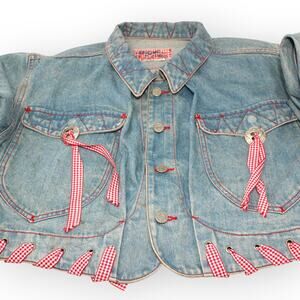 Vtg M/L HystericEtVous Crop Denim JeanJacket Western Gingham Red Cowgirl Light