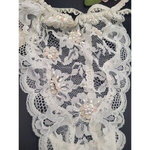 Vtg M/L Victorias Secret Lace T Back G String Thong Panties Beaded Ivory Bridal