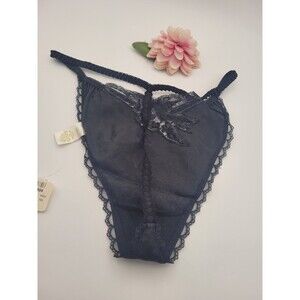 Vtg M/L Victorias Secret Satin T Back / Thong Panties String Beaded BLACK NWT