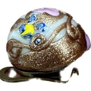 Vtg Made in ITALY Venetian Wedding Cake Glass Button Clip On Earrings Pink Gold