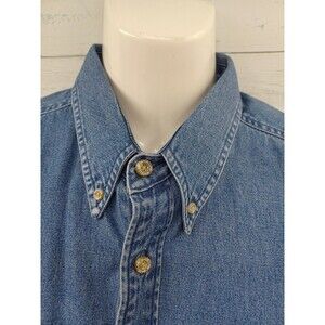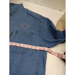 Vtg Magellan Shirt Mens XL Hunting Rifle Pistol Blue Denim Button Down Patch