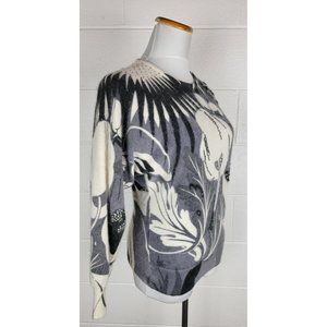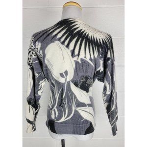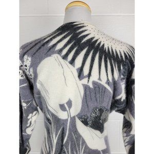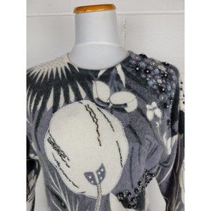 Vtg Magnolia Womens Lambswool Angora Floral Beaded Sweater Gray Cream Dolman S