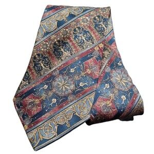 Vtg Mallory & Church Necktie Blue Geometric 100% Silk Tie Made in USA