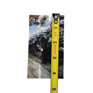 Vtg Man Posing Near Bush Original Monochrome Photography Found Portrait Snapshot