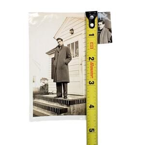 Vintage Man Ready For Trip to Minneapolis 1942 Original Monochrome Photo Black and White Found Snapshot 4.5 x 3.75 in Portrait.