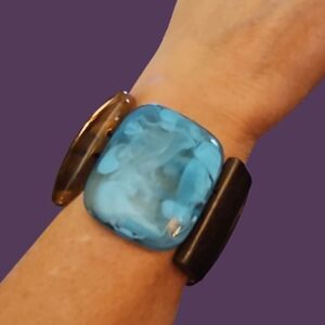 Enhance your style with this elegant blue and brown wearable bracelet. Perfect for any occasion.