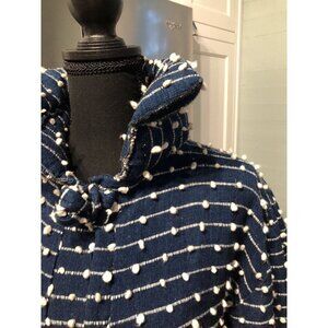 This vintage Marena Marena Two Inc overcoat duster is a rare find for any fashion-savvy woman. The long blue coat with fringe accents and a toggle closure is perfect for the winter, fall, or spring seasons. The oversized fit and bohemian style make it a great addition to any art-themed or Southwestern-inspired outfit.
