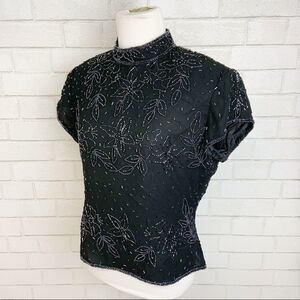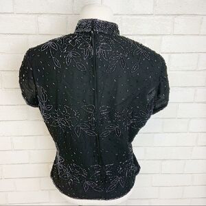 Vtg Marina Bresler Sequin Black Evening Blouse U2