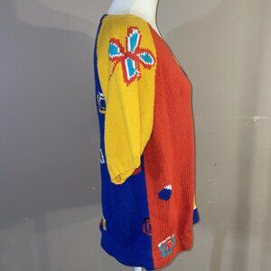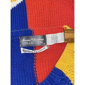Vtg Marisa Christina Floral Hand Knit Sweater Whimsy Granny Retro Colorblock Lrg