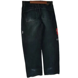Experience the iconic 90s hip-hop style with these vintage Marithe Francois Girbaud blue baggy jeans. Made with high-quality denim fabric, these relaxed fit jeans feature a 5-pocket design with a button closure and a mid-rise waist. The wide-leg style comes with a 32-inch inseam and waist size.