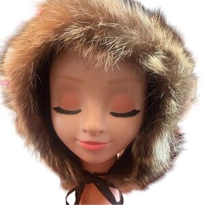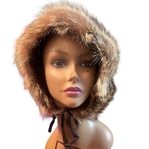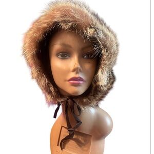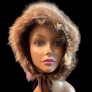 Vtg Marshal Field & Company Hat Bars Genuine Fox Fur string closure
