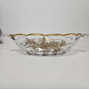 Vintage, Collectible, Clear Glass, Gold Flowers, New Martinsville, Janice, Gold Overlay, Relish Dish, Candy Dish, Bathroom Dish, Jewelry Dish, Nightstand, Kitchen