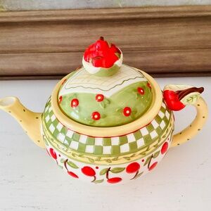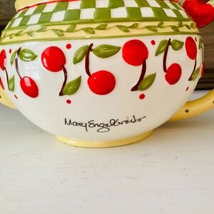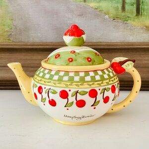 Vintage Mary Engelbreit MYG4 Cherries Jubilee Teapot Enesco 1998 signed discontinued, collectable. Beautiful tea pot in excellent condition, no chips or cracks. Valued at $139.95 from Replacements,Ltd.