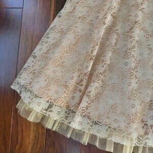 Vtg Masquerade Gold Cocktail Dress Gown Shimmer Lace Prom Y2K Fairy Size 5/6.