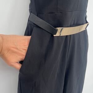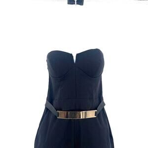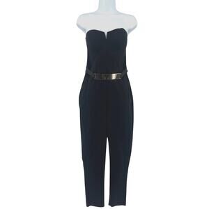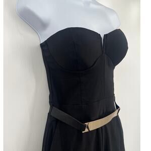 Material Girl Strapless Black Jumpsuit Sweetheart Neck Gold Belt Y2K Mob Wife