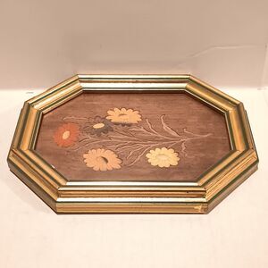 Vtg Mayflower Sorrento Inlaid Wood Framed Art-Floral-Octagonal-Marquetry-Italy