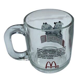 This collectible glass mug from McDonald's 1988 Toledo Zoo series features a charming panda design. Its sturdy handle and clear glass make it a practical yet decorative piece. Ideal for collectors or those who appreciate unique glassware from fast-food collaborations.