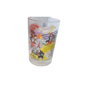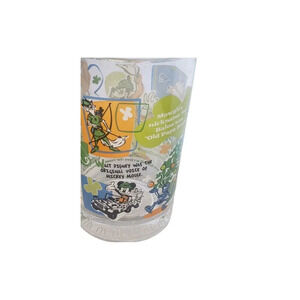 This set of 2 vintage McDonald's glass cups features iconic Disney character, Mickey Mouse, and celebrates the 100th anniversary of Disney World. The cups are a perfect addition to any Disneyana or collectibles collection, and were manufactured in the United States in contemporary times. The set includes glasses of various sizes and is perfect for enjoying your favorite beverage while showcasing your love for Disney. Measurements photographed. See pictures, please. Ships quickly
