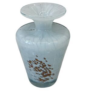 Vtg Mdina Malta Studio Hand Blown Signed Glass Vase Sea Sand Splatter 4.5"