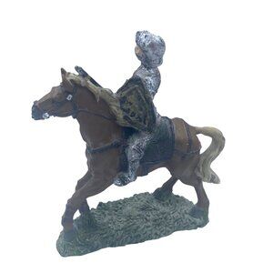 Vtg Medieval Knight On Horseback Figurine Military Soldier 4.5"Tall Resin Armor