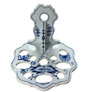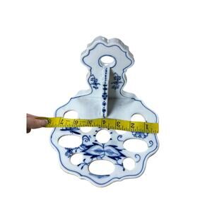 Vtg Meissen style Blue Onion Wall Utensil Holder - 10 slots- cottagecore Item has number marking, and a stamped 2 on the back. Item is in overall good vintage condition, has some small sections with pale yellow discoloration. Does not include any utensils. The base is not totally flat, the left front side is bends slightly. Item weighs around 2 lb 6 oz when packed carefully for shipping from the United States. This item is not in perfect condition and is pre-owned, vintage and shows some signs of wear Photos also serve as part of the item description, please view both closely.
