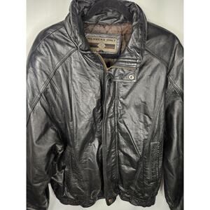 Vtg Members Only Black Leather Jacket Coat Bomber Flight Motorcycle Zip-Up Large