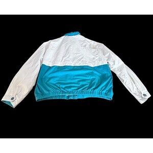 This vintage Members Only Mariner Jacket is a stylish and classic addition to any man's wardrobe. Featuring a full zip-up design with a unique teal and white color, this jacket is perfect for casual outings or even workwear. Made from soft polyester with a nylon lining, this lightweight jacket is suitable for all seasons and includes various features such as pockets and a stand-up collar. With its retro 90s style and nautical theme, this Members Only jacket is a must-have for the fashion-forward man looking to make a statement.