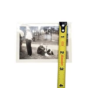 Vintage Men Sitting in Grass At Park Original Monochrome Photo Black and White Found Snapshot 2.5 x 3.5 in Landscape.