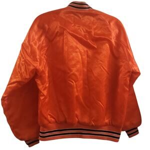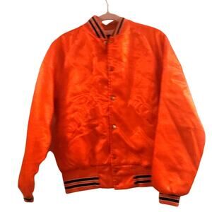 Vtg Mens 8Os Orange Satin Coat Pla Jac Size M USA Made Sportswear Bomber Jacket